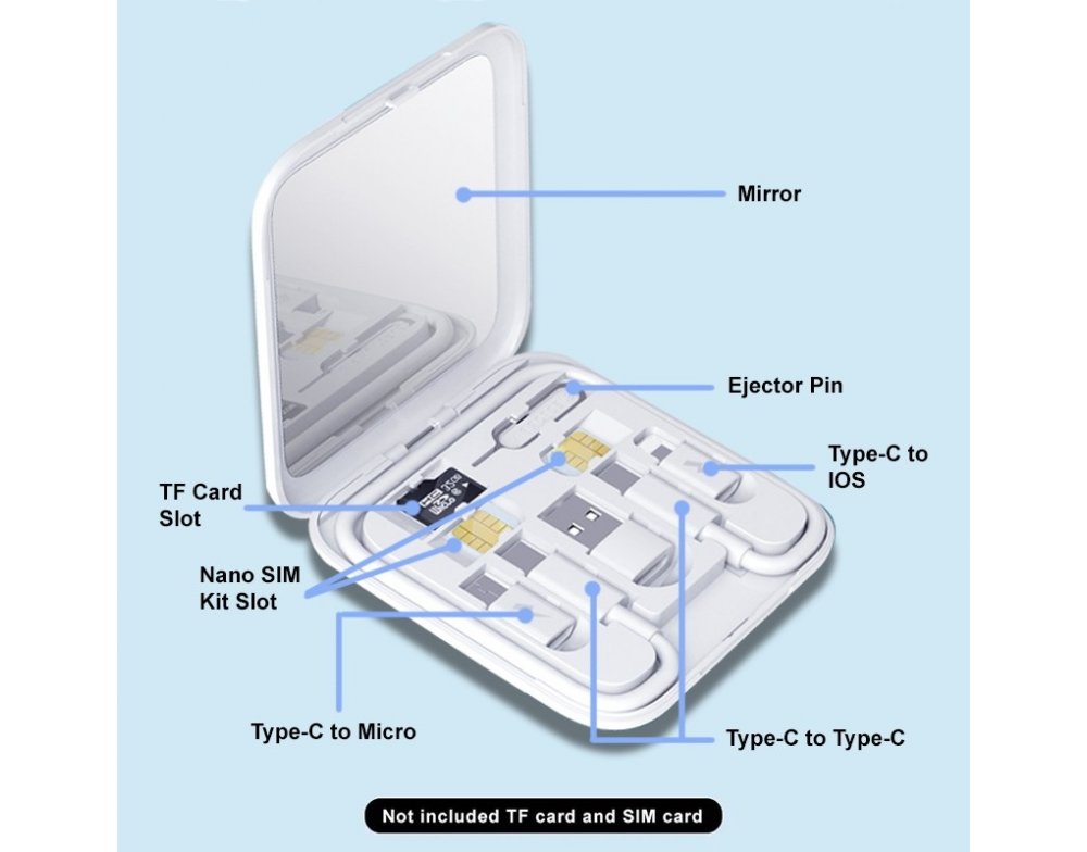 Discover the ultimate convenience with our 6-in-1 3A Quick Charge USB Cable. This versatile accessory features multiple connectors (USB-A, USB-C, Micro USB, and Lightning) for all your devices, supports fast charging up to 3A, and includes a sleek mirror case that doubles as a handphone stand. Plus, it comes with a built-in SIM card eject pin for easy SIM swaps. Compact, durable, and tangle-free, it’s perfect for home, office, or travel. Stay powered up and ready for anything with this all-in-one charging solution.