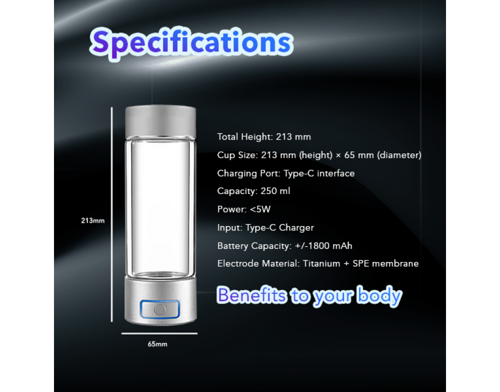 The Drinkware Hydrogen Bottle is your all-in-one wellness companion. It features a Double Membrane Cavity for high-efficiency hydrogen, works with both purified and mineral water, and is made from durable High Borosilicate Glass. Enjoy Long-Lasting Performance, an 18-Minute Hydrogen Absorption Mode, and Three-in-One Functionality—drink, inhale, or apply for beauty and health benefits.