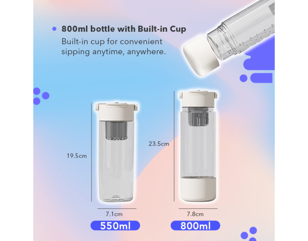 800ml with Built-in Cup – Built-in cup for convenient sipping anytime, anywhere