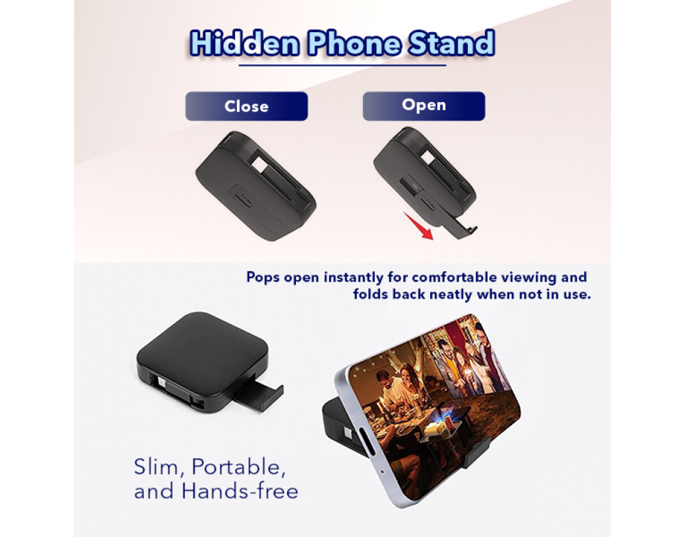 - Built-in hidden phone stand