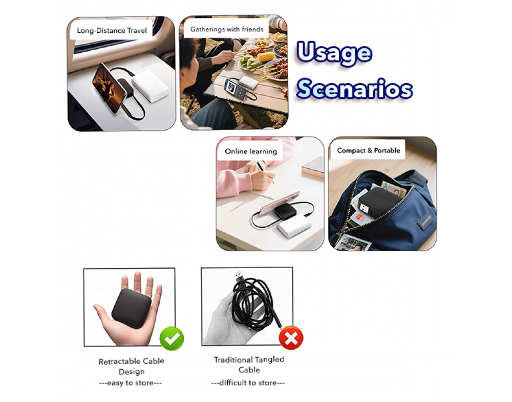 A sleek, multi-functional essential that delivers fast charging, smooth data transfer, and phone-to-phone power sharing. Designed with a hidden stand and a refined braided retractable cable, it keeps your setup neat, stylish, and ready anywhere.