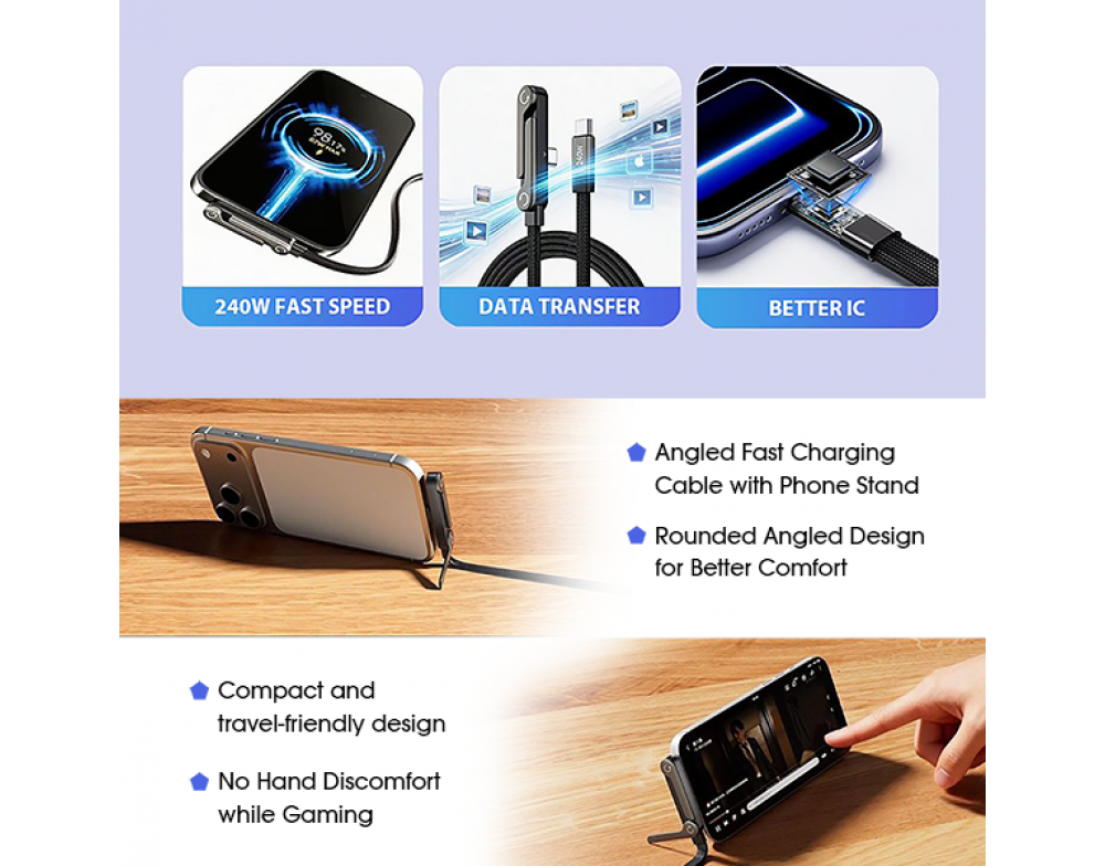 → 240W | Built-in Stand | Fast Charging Data Cable