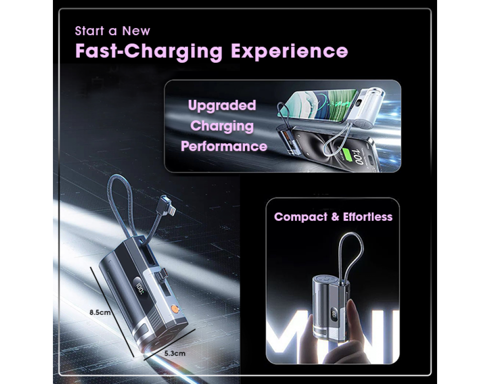 •Built-in Type-C Cable – No extra cables needed