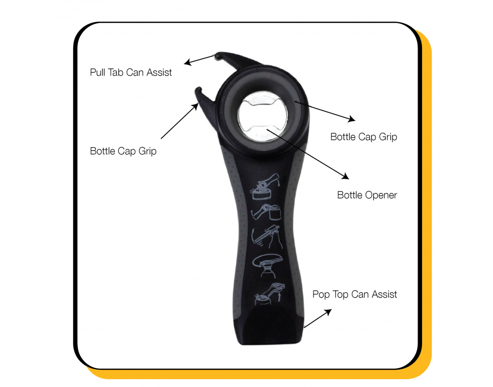 With no need for good finger strength, it opens jars, bottles and cans.