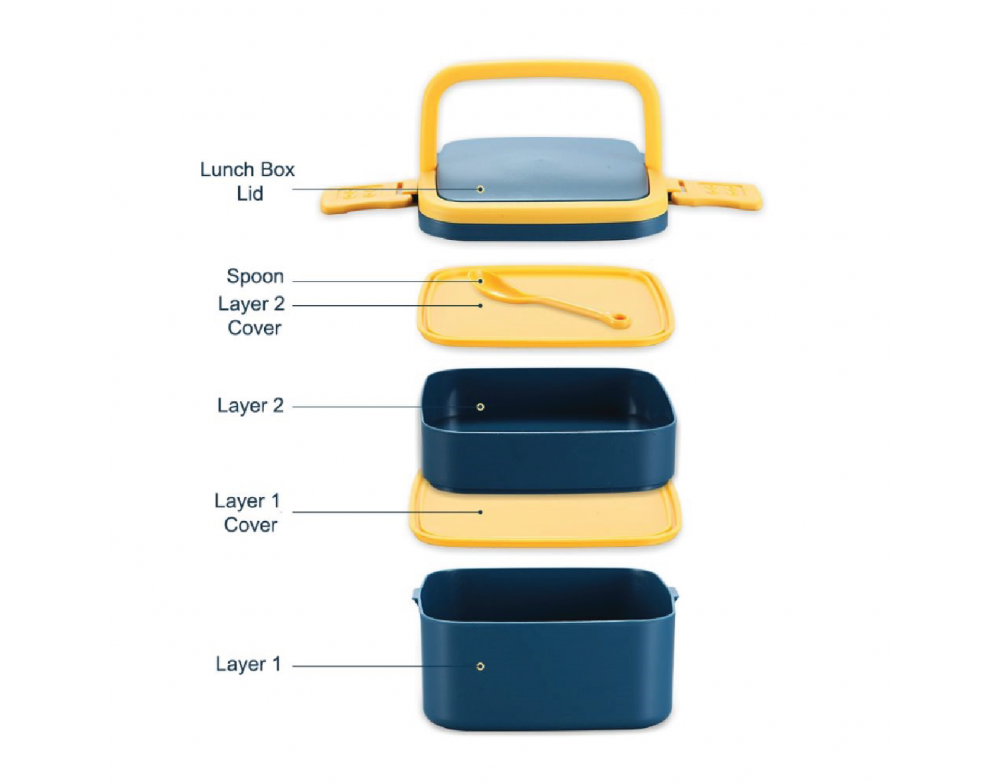 Household Double Layer PP material BPA free Square lunch Box PH34