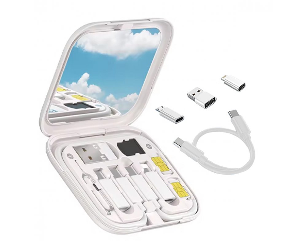 Discover the ultimate convenience with our 6-in-1 3A Quick Charge USB Cable. This versatile accessory features multiple connectors (USB-A, USB-C, Micro USB, and Lightning) for all your devices, supports fast charging up to 3A, and includes a sleek mirror case that doubles as a handphone stand. Plus, it comes with a built-in SIM card eject pin for easy SIM swaps. Compact, durable, and tangle-free, it’s perfect for home, office, or travel. Stay powered up and ready for anything with this all-in-one charging solution.
