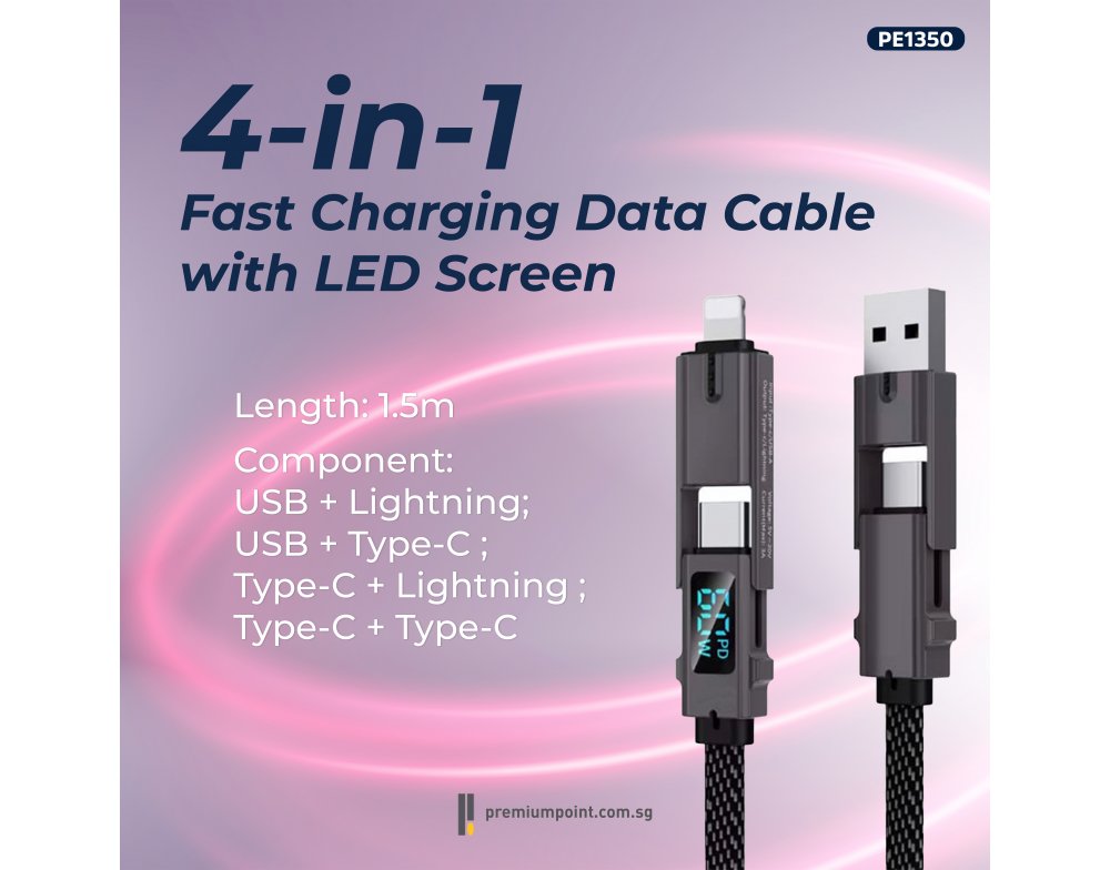 4-in-1 Fast Charging Cable with LED Screen PE1350