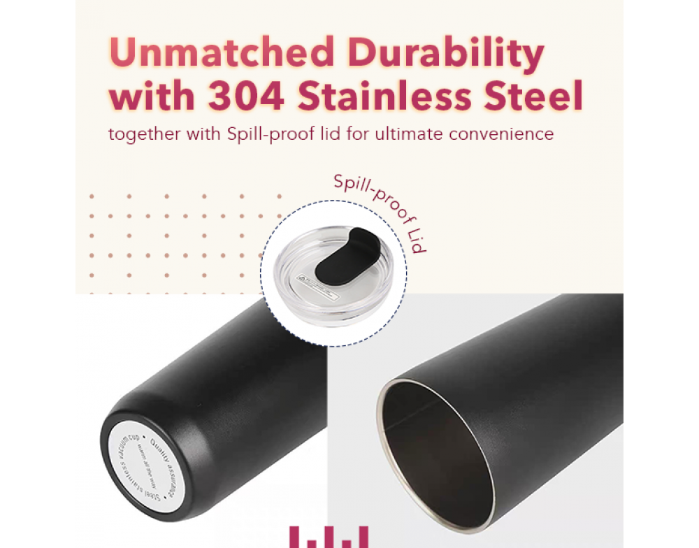 Material: 304 Stainless Steel Inner + 201 Stainless Steel+ Spill-proof tumbler lid