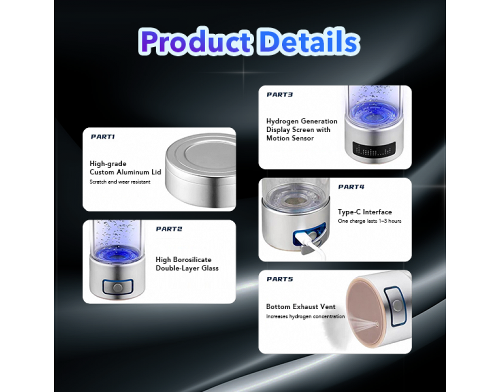 The Drinkware Hydrogen Bottle is your all-in-one wellness companion. It features a Double Membrane Cavity for high-efficiency hydrogen, works with both purified and mineral water, and is made from durable High Borosilicate Glass. Enjoy Long-Lasting Performance, an 18-Minute Hydrogen Absorption Mode, and Three-in-One Functionality—drink, inhale, or apply for beauty and health benefits.