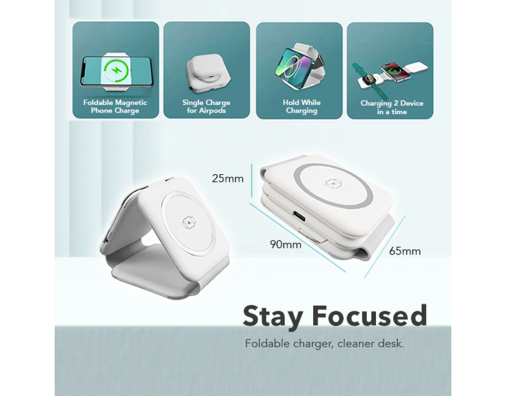 Say goodbye to cable chaos and tangled cords with our Compact Wireless Charging Kit – the ultimate all-in-one solution for modern device users. Designed with efficiency and style in mind, this sleek charging hub keeps your workspace clean while powering up your essentials.