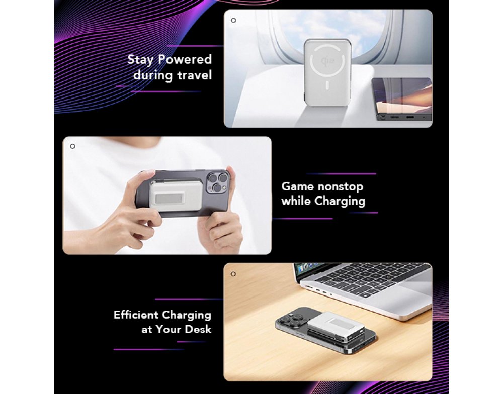 Enjoy the ultimate convenience with a built-in cable and magnetic charging stand, 15W magnetic wireless output for instant snap-and-charge—all packed in a compact, stylish design with universal Type-C input and output for seamless compatibility.