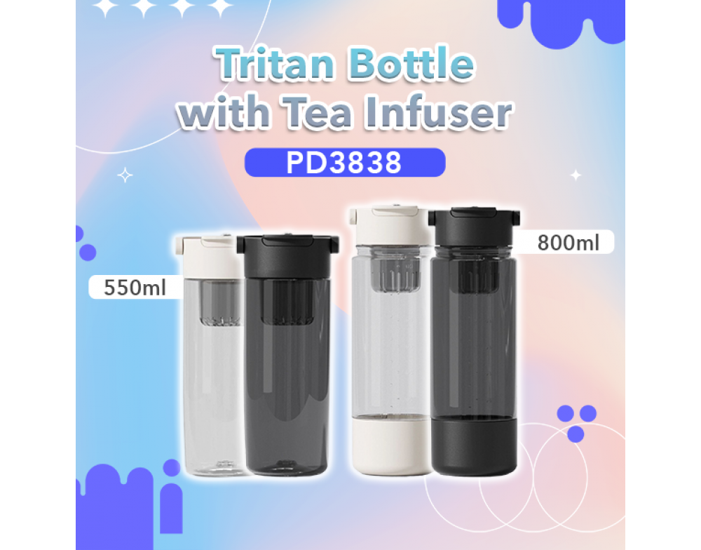 Stay hydrated in style with the Tritan Bottle with Tea Infuser — durable, leak-proof, and perfect for hot or cold drinks. Easy brewing with a magnetic tea infuser, available in 550ml & 800ml.