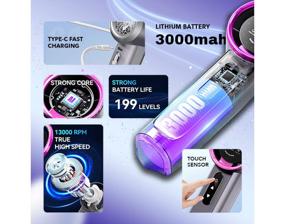Stay cool anywhere with this sleek portable fan featuring a 3000mAh ultra-long battery life, 199 wind speed levels, and super strong airflow. Easy to slip into your bag, so you’ll stay cool anytime, anywhere.