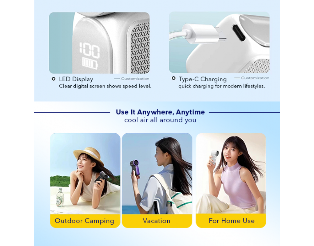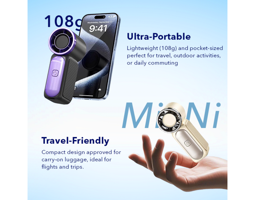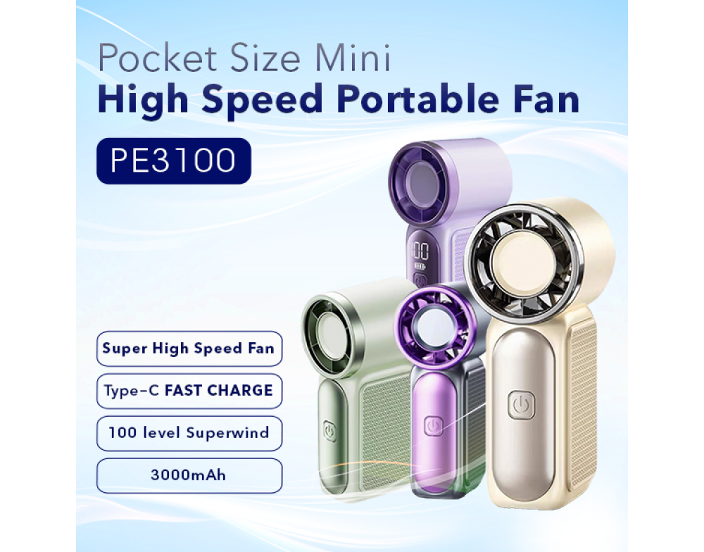 Stay cool anywhere, anytime with the PE3100 Pocket Mini High-Speed Fan — the perfect blend of power, style, and portability. Designed for people on the go, this compact fan delivers an impressive breeze performance in a sleek, modern design.