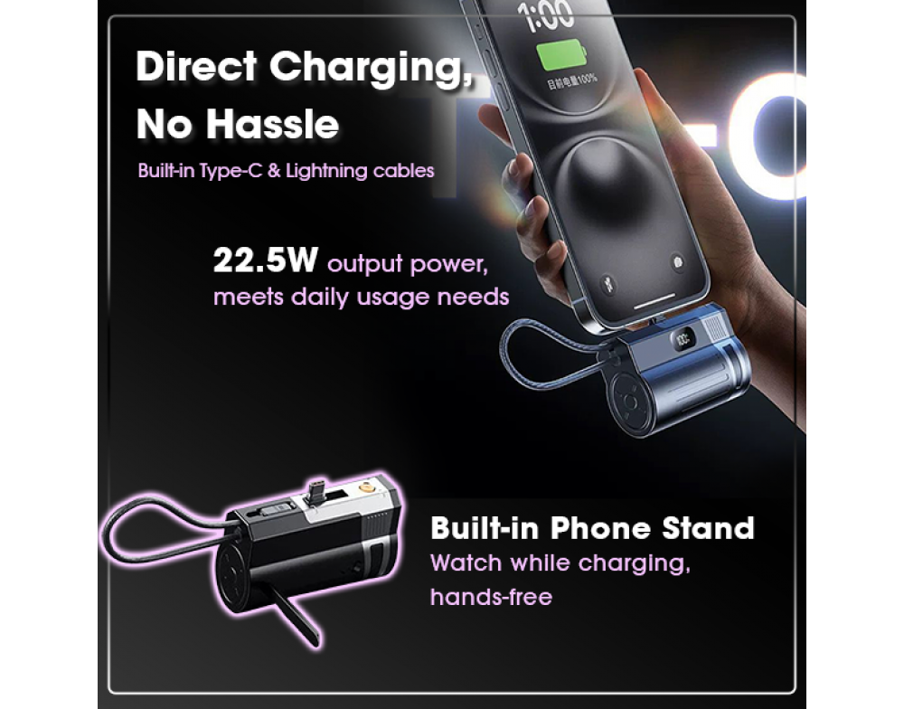 •Built-in Type-C Cable – No extra cables needed